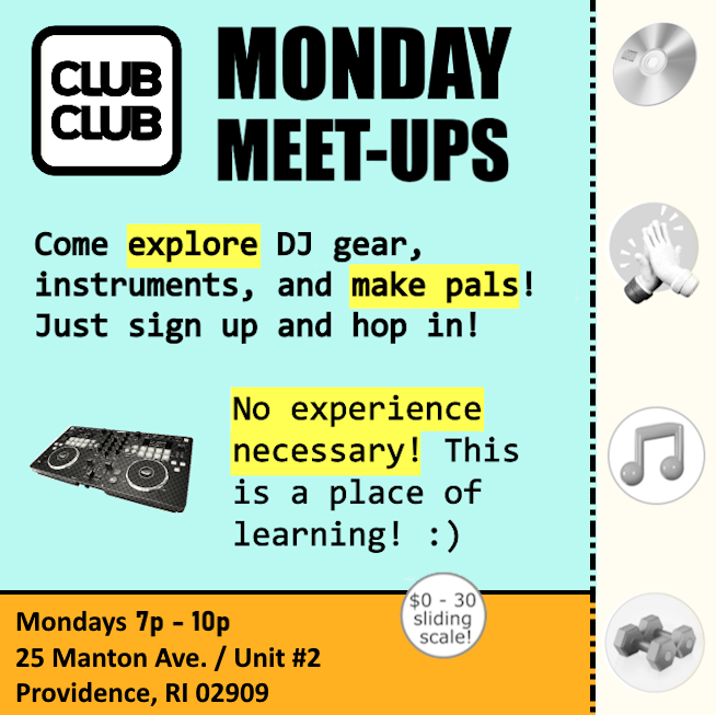 Club:Club is part school, part third space. Every week we host a meet-up where anyone (yes, even total beginners!) can swing through and try out gear, ask questions, and show off toys they have.