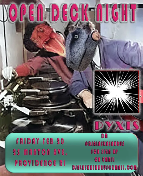 Bring your set up or your USB! DM @alaskasurus or email djalaskasaurus@gmail.com to sign up!